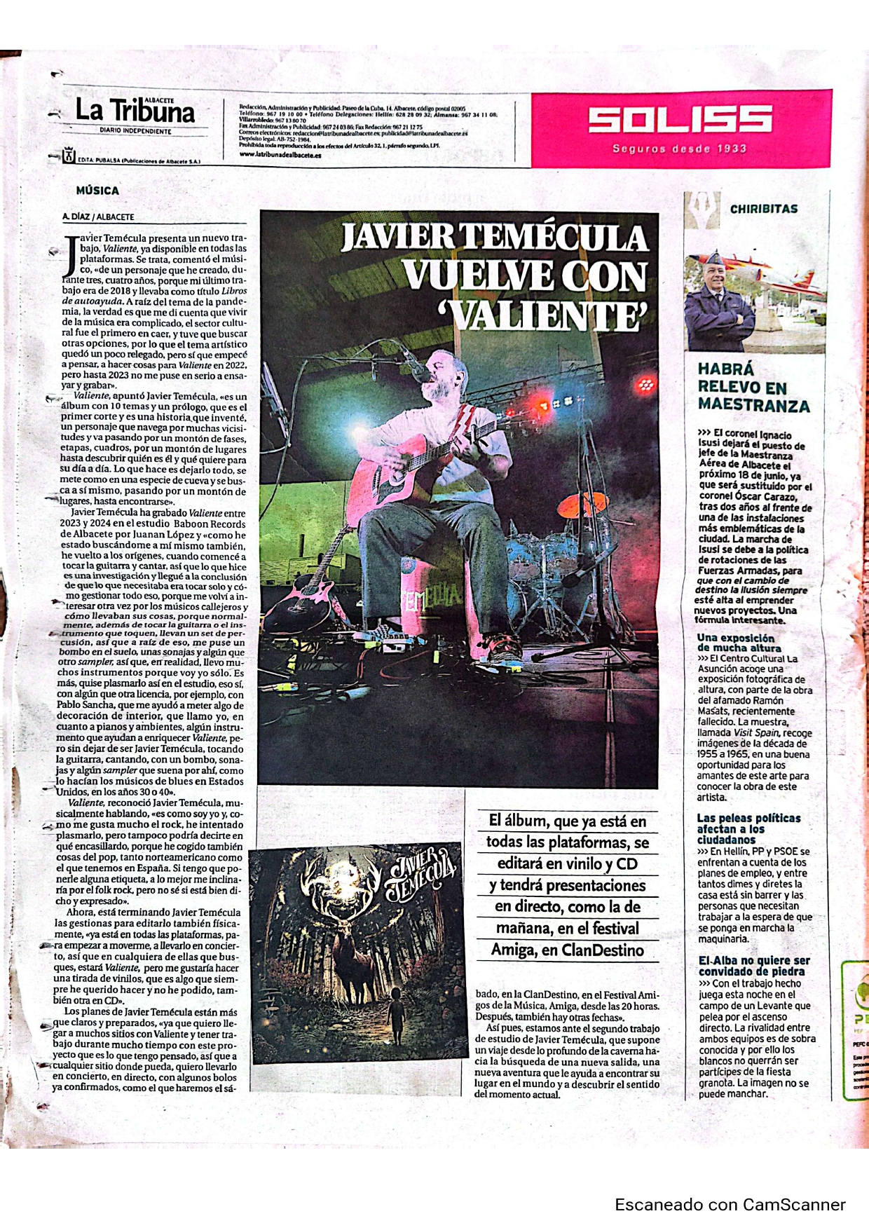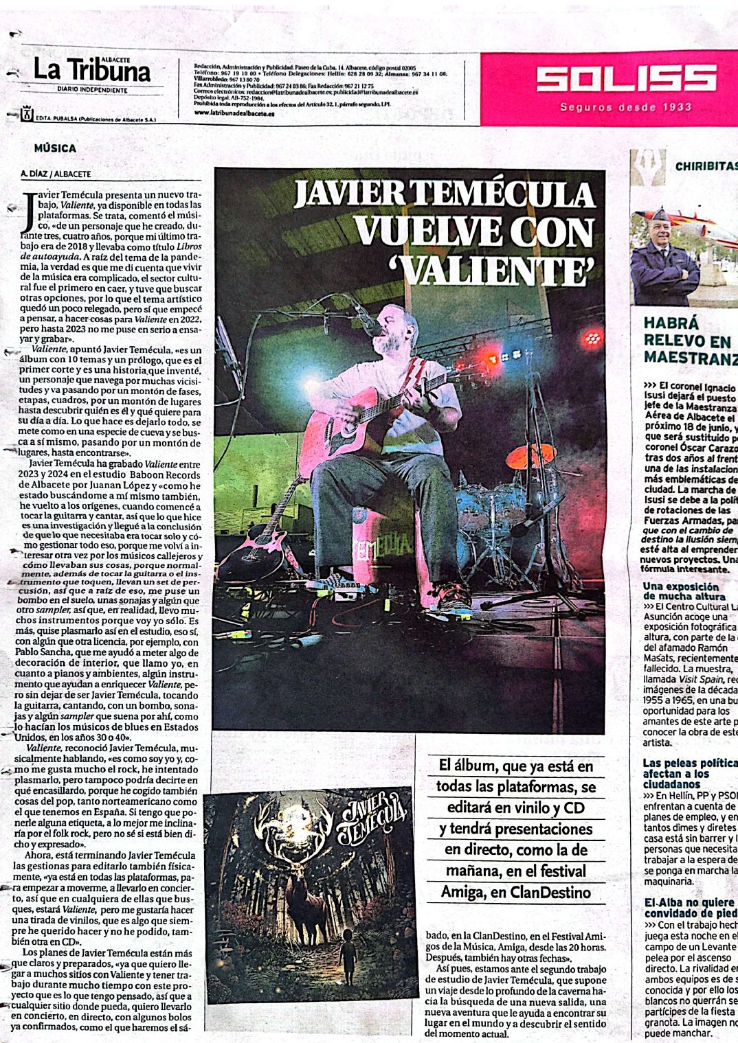 Javier Temécula vuelve con ‘Valiente’la Tribuna Albacete.